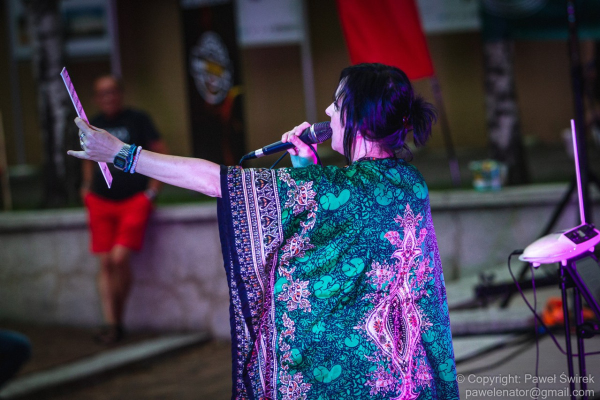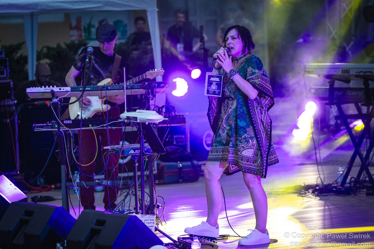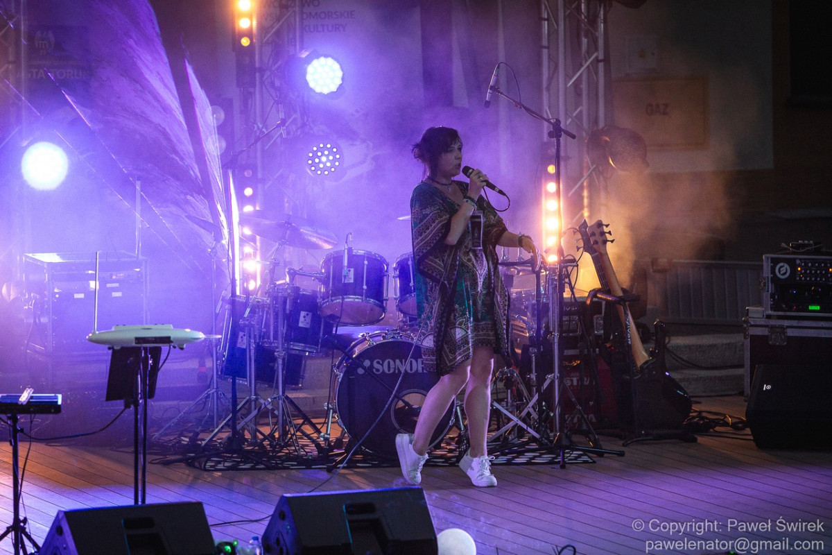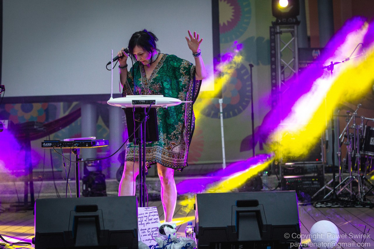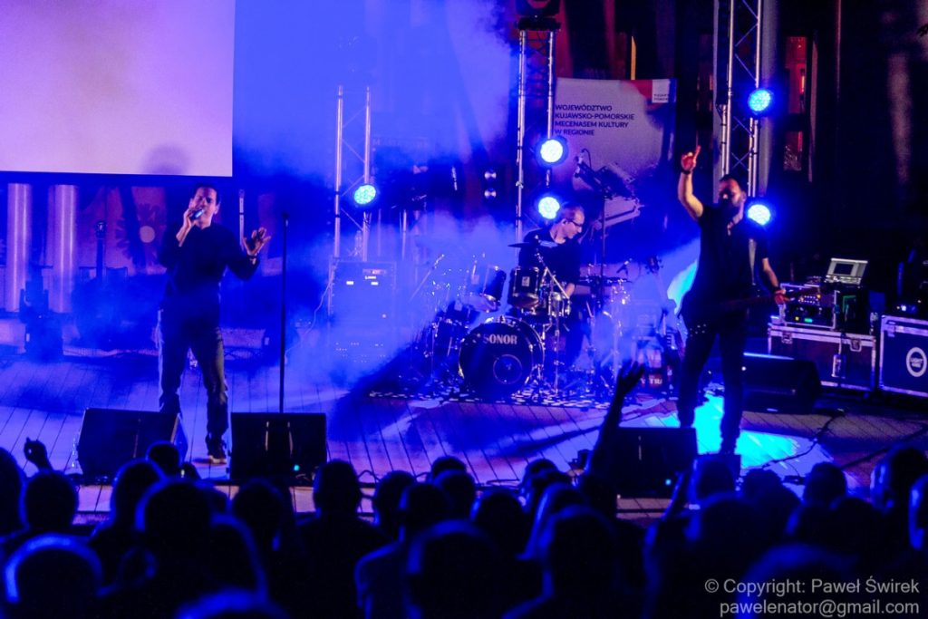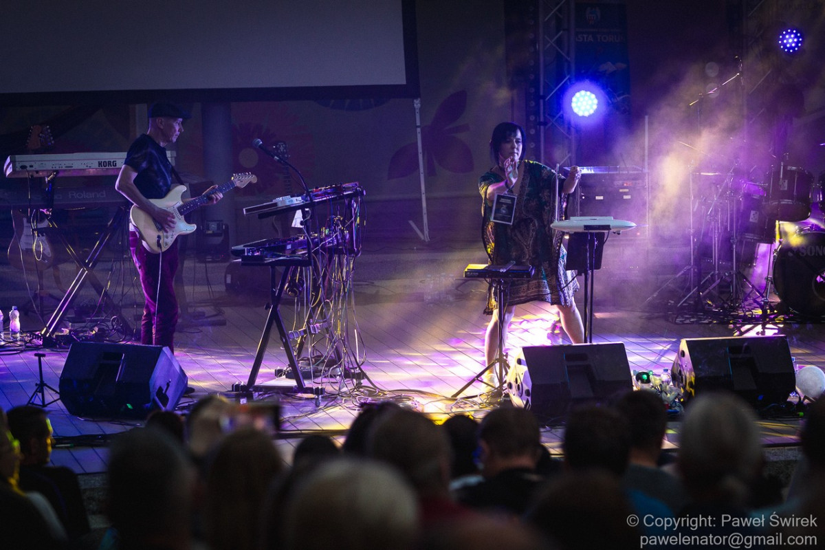 Zanim doczekaliśmy się na występ głównej gwiazdy pierwszego dnia festiwalu, na scenie pojawiła się Joanna Vorbrodt wraz z mężem Romanem. Jest to poetka, autorka tekstów piosenek, kompozytorka. Lubi eksperymentować z formą i bawić się muzycznymi stylami. Gra na thereminie. Oboje tworzą bardzo nastrojową muzykę. Pierwszy raz większa publiczność mogła podziwiać ten duet na Ino Rock 2019. O ile występ w Inowrocławiu odbył się w środku dnia, przez co zatracił się klimat wizualny koncertu (ta muzyka dużo lepiej prezentuje się po zmroku), o tyle w Toruniu zarezerwowano właściwy slot czasowy. Było nastrojowo, a gdy zrobiło się naprawdę ciemno, występ dodatkowo uatrakcyjniały efekty świetlne znakomicie współgrające z muzyką.
