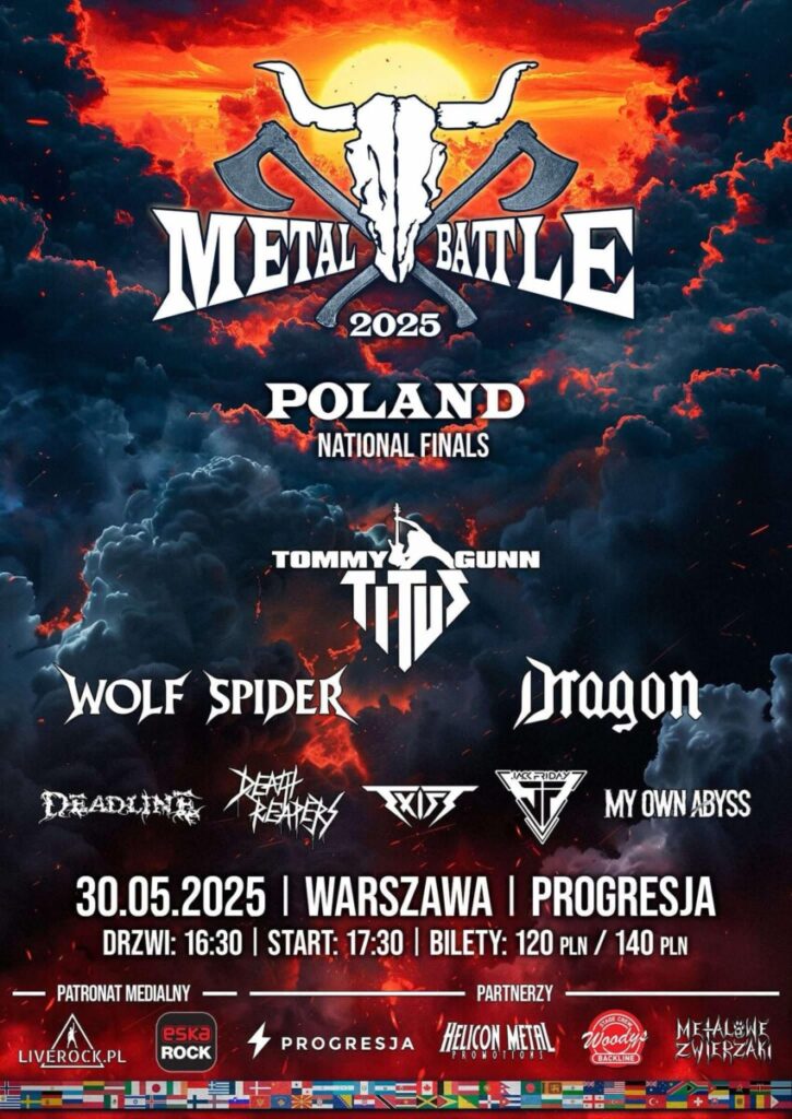 30 maja w warszawskim klubie Progresja odbędzie się wielki finał Wacken Metal Battle Poland 2025. Pięć zespołów, wybranych spośród ponad dwustu zgłoszeń, stanie do walki o najważniejsze koncertowe trofeum w świecie metalu – występ na scenie legendarnego festiwalu Wacken Open Air w Niemczech.