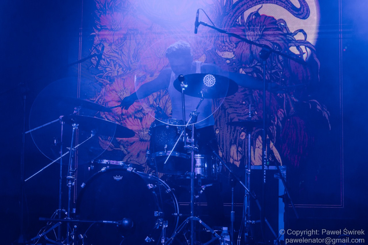 Czwartym zespołem występującym na scenie parkowej była grupa ToŃ. Choć to nowy zespół, nie było mi dane ich zobaczyć wcześniej. Jak na muzykę, którą grają scena była spowita jednolicie na niebiesko lub czerwono. Przynajmniej na początku koncertu. Zagrali niezbyt długiego seta (podobnie jak wcześniejsze zespoły). Poniżej galeria zdjęć:
